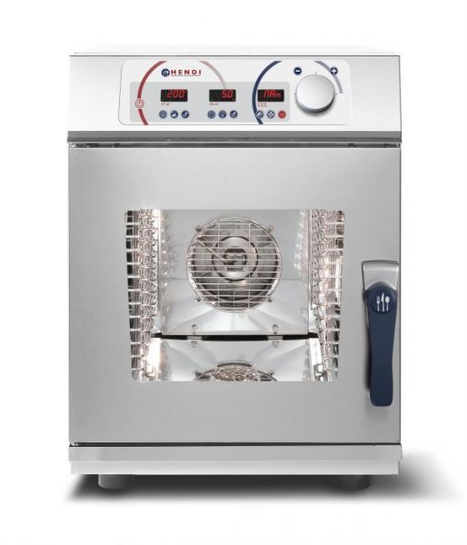 Профессиональный пароконвектомат Hendi позволяет производить обработку продуктов при минимальном использовании масла и воды, при этом сохраняя витаминный и минералогический состав приготовленного блюда.