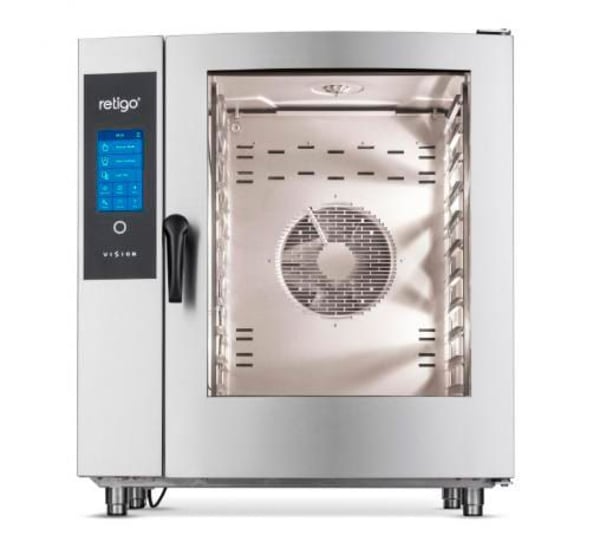 Пароконвектомат Retigo Vision позволяет производить обработку продуктов при минимальном использовании масла и воды, при этом сохраняя витаминный и минералогический состав приготовленного блюда.