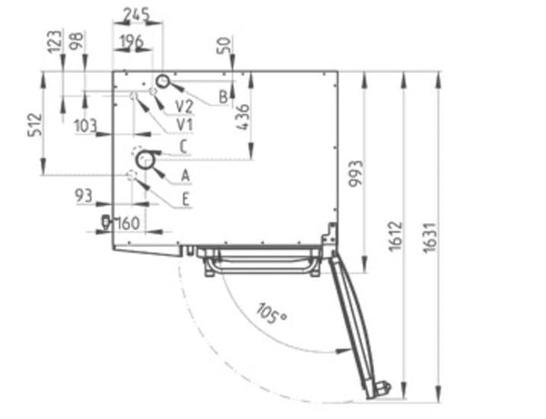 Внутренняя откидная стенка перед вентилятором.Сенсорная панель управления пароконвектоматом Vision.
