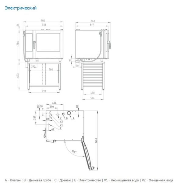 Управляемый аварийный клапан для сброса избыточного пара. Присутствуют полки для гастрономической посуды.