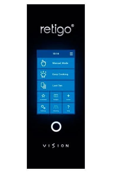 Пароконвектомат оснащённый сенсорной панелью, Вы задаете программу на дисплее, а Retigo осуществляет автоматически все процессы в камере, с помощью встроенного микропроцессора, а по окончанию оповещает Вас сигналом.