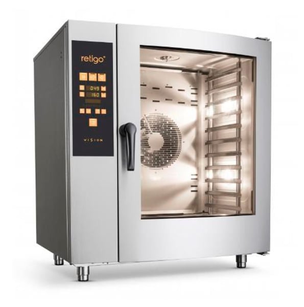 Пароконвектомат Retigo Vision позволяет производить обработку продуктов при минимальном использовании масла и воды, при этом сохраняя витаминный и минералогический состав приготовленного блюда.