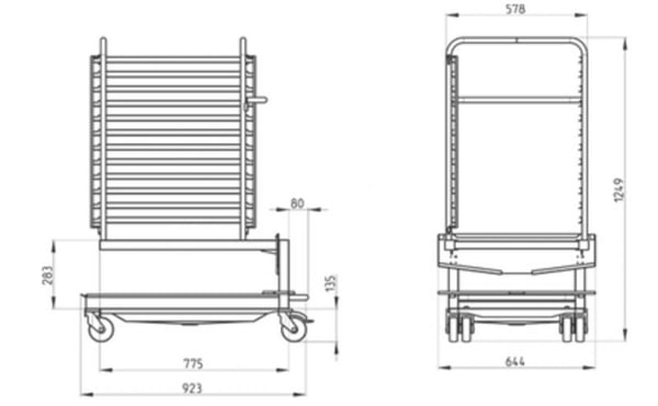 Размеры гастроемкости: GN 2/1 (650x530 мм). Основное оборудование этой пароконвектомата включает в себя тележку. Существует либо система впрыска, либо парогенератор котла. Источником тепла является электричество или газ.