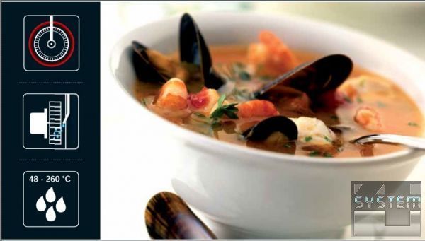 Система «Venturi»: принудительная вентиляция рабочей камеры для резкого снижениия влажности во внутреннем объеме (для придания румяной корочки на продуках, а также для сбрасывания пара перед открыванием двери во избежания его резкого выброса).