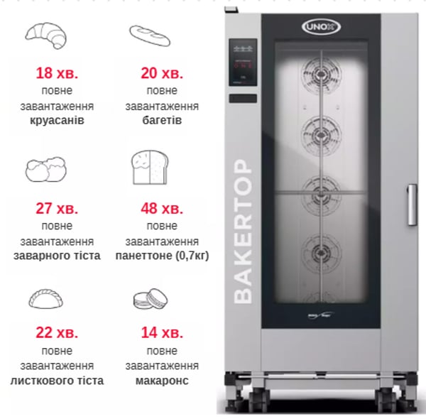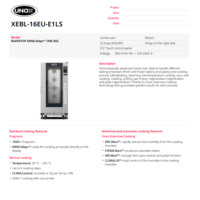 Пароконвекционная печь UNOX BAKERTOP MIND.Maps™ XEBL-16EU-E1LS — это интеллектуальная электрическая печь, созданая для совершенной выпечки. Благодаря инновационному контролю микроклимата, вы получаете идеальную структуру мякиша и безупречную золотистую корочку каждый раз. Сенсорный дисплей MASTER.Touch ONE на 9,5" позволяет програмировать циклы приготовления одним касанием, а функция раздельного приготовления блюд без смешивания ароматов максимизирует эффективность вашой кухни. Лучшее решение для мощных пекарен, кондитерских и супермаркетов.