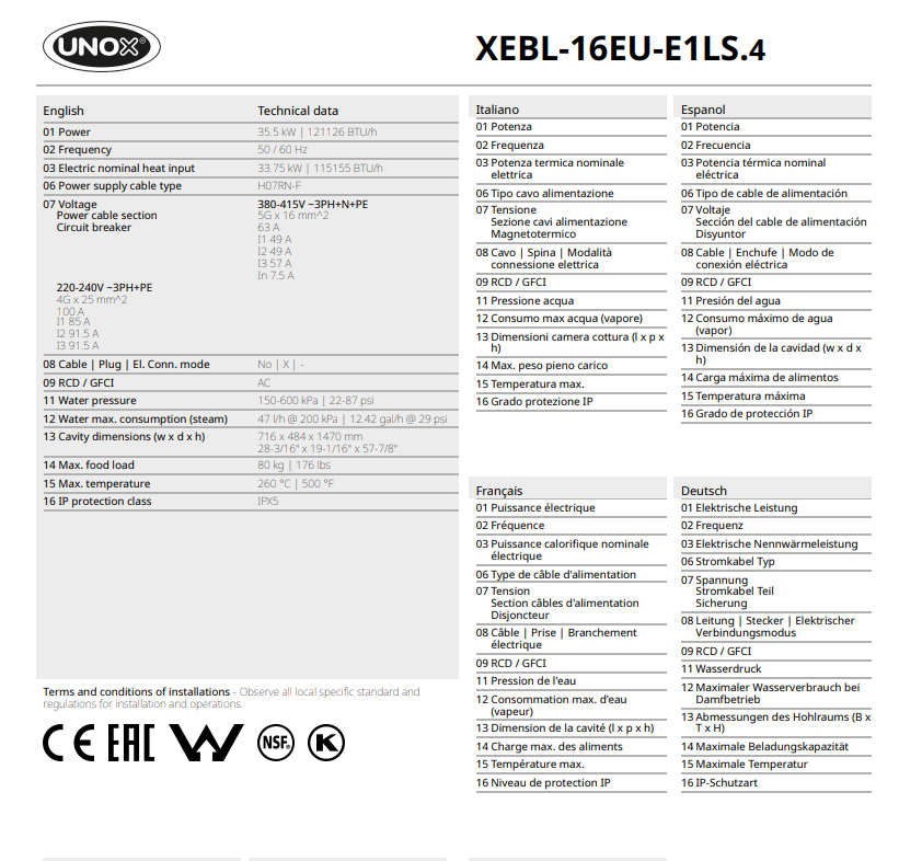 • Rotor.KLEAN™ - автоматическая система мойки камеры с встроенным резервуаром для моющего средства UNOX DB1076A0. 4 встроенные автоматические программы мойки и диагностика процессов мойки.