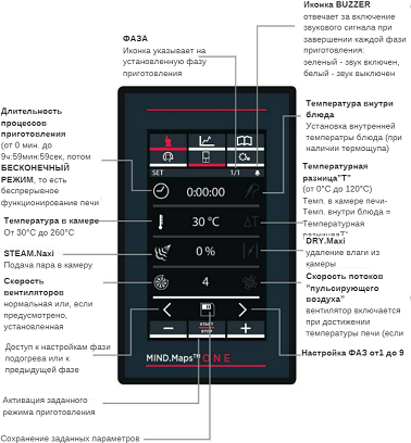Данная печь имеет встроенную память на 384 программи с возможностью добавления названия и изображения. А для упорядочивания ваших рецептов, дисплей оснащен 16 группами, чтобы сохранение и поиск нужного рецепта были более еффективными.