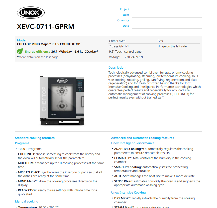 Пароконвекционная печь UNOX CHEFTOP MIND.Maps™ XEVC-0711-GPRM — это технологический прорыв в сфере профессионального теплового оборудования, воплощающий многолетний опыт мирового лидера отрасли. Серия CHEFTOP была создана специально для шеф-поваров и рестораторов, которые не готовы к компромиссам между творческой свободой и строгим контролем качества. Благодаря интеллектуальным системам управления, эти печи гарантируют абсолютную повторяемость результата: каждое блюдо будет идеальным, независимо от того, кто сегодня стоит на смене.