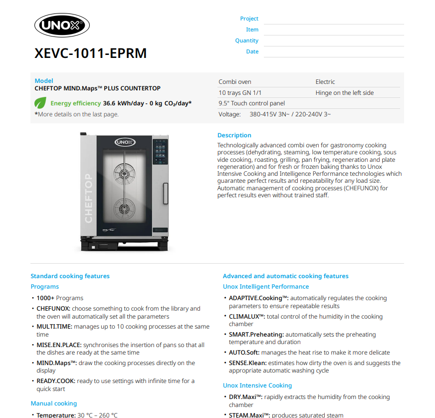 Пароконвекционная печь UNOX CHEFTOP MIND.Maps™ XEVC-1011-EPRM — это технологический прорыв в сфере профессионального теплового оборудования, воплощающий многолетний опыт мирового лидера отрасли. Серия CHEFTOP была создана специально для шеф-поваров и рестораторов, которые не готовы к компромиссам между творческой свободой и строгим контролем качества. Благодаря интеллектуальным системам управления, эти печи гарантируют абсолютную повторяемость результата: каждое блюдо будет идеальным, независимо от того, кто сегодня стоит на смене.