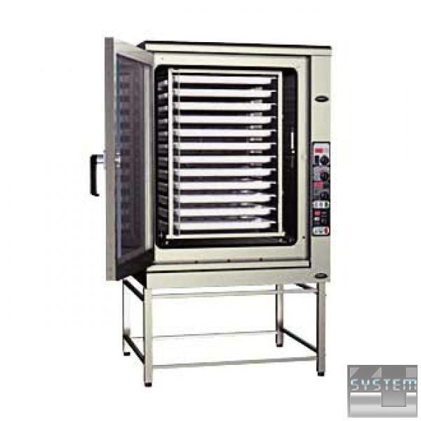 Потоки горячего воздуха благодаря особым высокоскоростным и более мощным вентиляторам равномерно распределяются в робочей камере, обеспечивая равномерное пропекание продукта на всех противнях, содержащихся в печи, и в каждой точке одного противня.