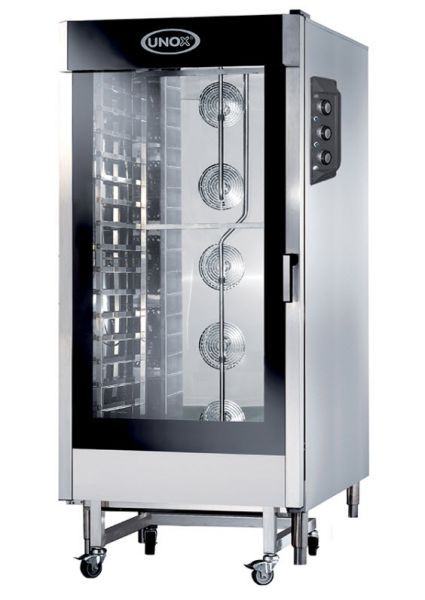 В данном шкафу 20 уровней под противни размером GN 2/1, одинарная дверь со стеклом, ручной впрыск пара, механическая система управления.