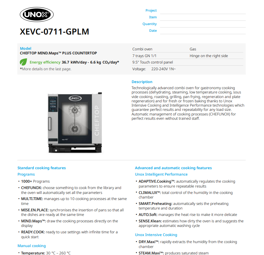 Пароконвекционная печь UNOX CHEFTOP MIND.Maps™ XEVC-0711-GPLM — это технологический прорыв в сфере профессионального теплового оборудования, воплощающий многолетний опыт мирового лидера отрасли. Серия CHEFTOP была создана специально для шеф-поваров и рестораторов, которые не готовы к компромиссам между творческой свободой и строгим контролем качества. Благодаря интеллектуальным системам управления, эти печи гарантируют абсолютную повторяемость результата: каждое блюдо будет идеальным, независимо от того, кто сегодня стоит на смене.