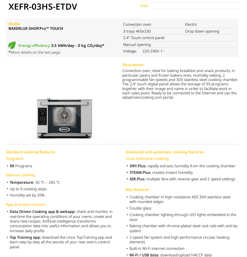 Дополнительным преимуществом приобретения конвекционной печі UNOX XEFR-03HS-ETDP с панелью управления TOUCH является наличие технологии искуственного интеллекта DATA DRIVEN COOKING.