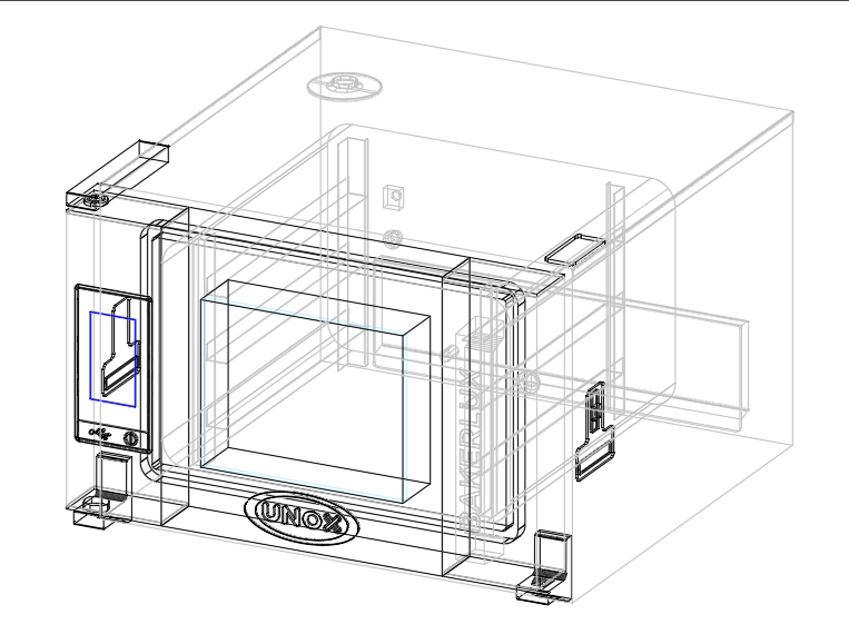 Замок Soft-Clise. Двери конвекционой печи имеют отменную балансировку и мягкое закрытие. Внутренее стекло, которое открывается, облегчает очистку и обеспечивает максимальную гигиену.