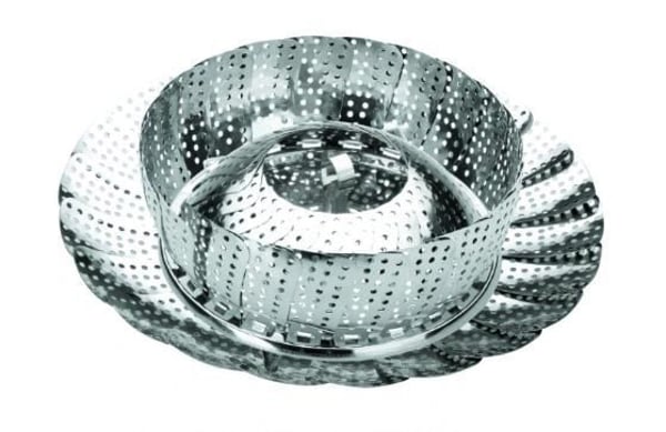 Дуршлаг - пароварка подходит для наплитной посуды с диаметром 28см, выполнена полностью из высококачественной нержавеющей стали.