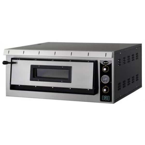 Однокамерная печь для пиццы снабжена двумя термостатами, регулирующими температуру внутри камеры, мощными нагревательными элементами в верхней и нижней частях камеры.