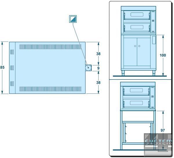 В моделях G (газовых) нагрев осуществляется с помощью горелок из нержавеющей стали под нижней панелью, снабженных предохранительными клапанами с ионизационным зажиганием.