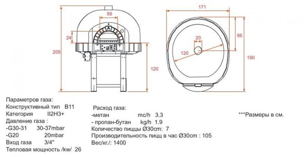 Описание печи для пиццы G120K