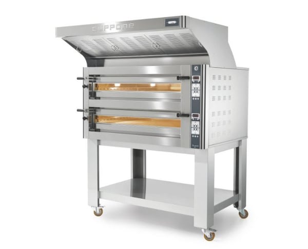 Печи для пиццы изготовлены из нержавеющей стали; пекарные камеры выполнены из нержавеющей стали; натуральное керамическое покрытие пода; внутреннее освещение;