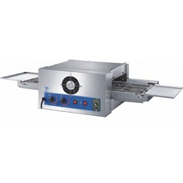 Термическая обработка происходит по средством напрягания внутреннего простарнства камеры электрическими ТЕНами, которые расположены сверху и снизу..Их мощность регулируется отдельными переклоючателями, что дает возможность добиться требуемой степени пропекания с каждой стороны. Температура внутри камеры настраивается в пределах от 50°С-400°С. Если блюдо недостаточно приготовлено, конвейер можно запустить в обратном направлении и произвести дополнительную обработку простым переключателем регулятора. Механическое управление, система вентиляции камеры. Мощность 7,80кВт. Напряжение 220В. Размеры самой камеры 530х380х75 мм, габариты аппарата составляют 1120х580х450мм.