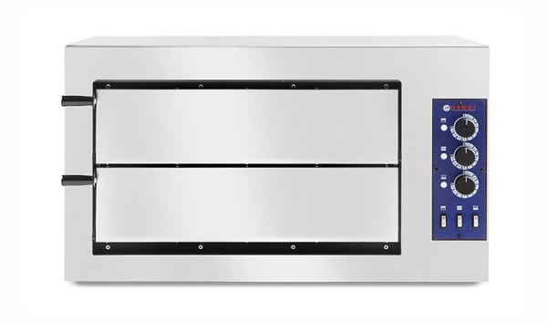 Нагрев осуществляется тремя изолированными ТЭНами, которые нагревают воздух рабочей камеры. ТЭНы расположены сверху и снизу, а также средний общий для нижней и верхней камеры - это способствует равномерному приготовлению пиццы со всех сторон.