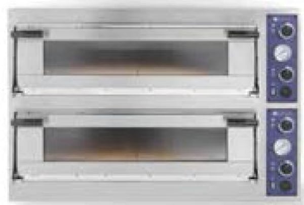 Нагрев осуществляется изолированными ТЭНами, которые нагревают воздух рабочей камеры. По три ТЭНы расположены сверху и снизу, а также средний общий для нижней и верхней камеры - это способствует равномерному приготовлению пиццы со всех сторон.