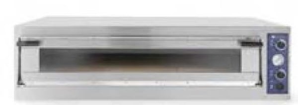 Пицца печь оснащена механической панелью управления, на которой предусмотрены независимые регуляторы температуры для верхних и нижних групп ТЭНов. Все выполняемые функции отображаются световыми индикаторами.