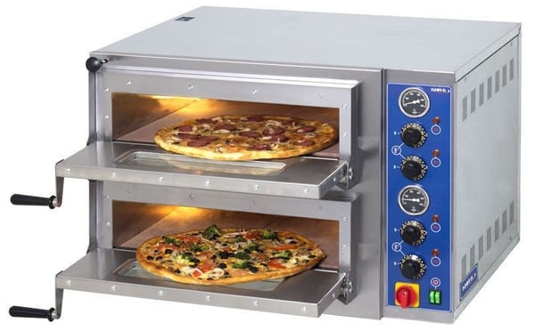 Двухкамерная подовая печь изготовлена из высококачественной нержавеющей стали со встроенным термометром. Температура внутри камеры достигает от 50 до 320 °С.