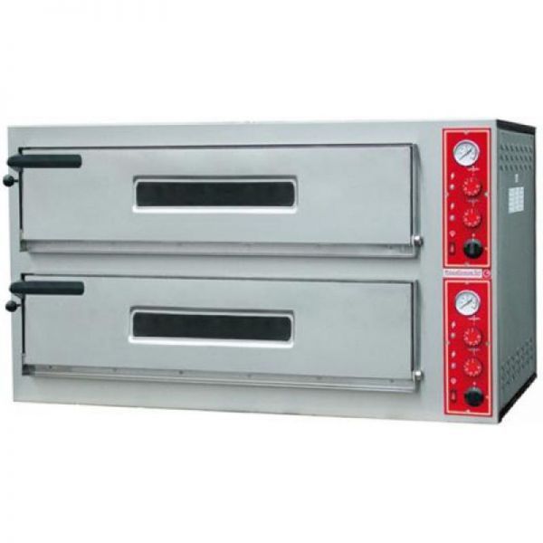 Двухкамерная печь для пиццы, удобное электромеханическое управление, передняя панель - нержавеющая сталь, корпус - из крашенной стали. Размеры внутренней камеры - 990х660х150мм. Печь вмещает - 2х6 пиццы диаметром 300мм. Мощность верхних тэнов - 4х2000Вт, нижних - 4х1670Вт. Регулировка температуры в камерах составляет +450С. Огнеупорный камень на дне печи. Встроенная подсветка, смотровое окно выполнено из жаропрочного материала, термометр.