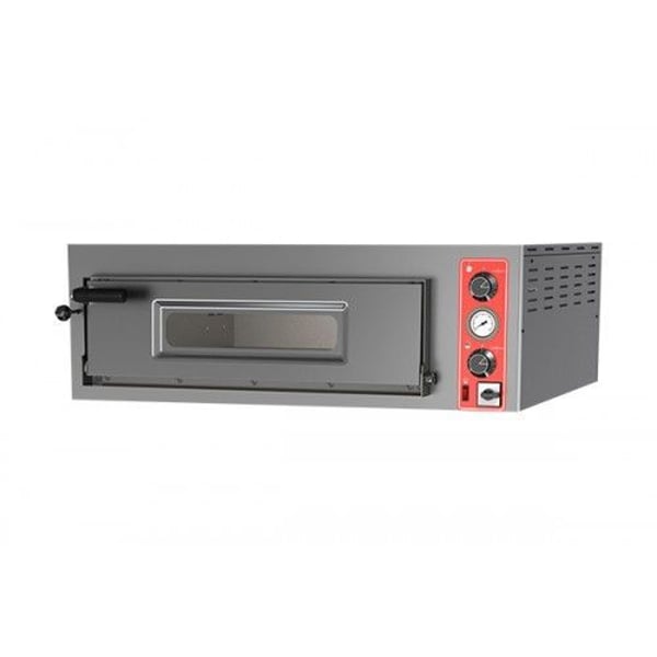 Однокамерная печь для пиццы, удобное электромеханическое управление, передняя панель - нержавеющая сталь, корпус - из крашенной стали. Размеры внутренней камеры - 660х660х150мм. Печь вмещает - 6 пиццы диаметром 300мм. Регулировка температуры в камерах составляет +450С. Огнеупорный камень на дне печи. Встроенная подсветка, смотровое окно выполнено из жаропрочного материала, термометр.