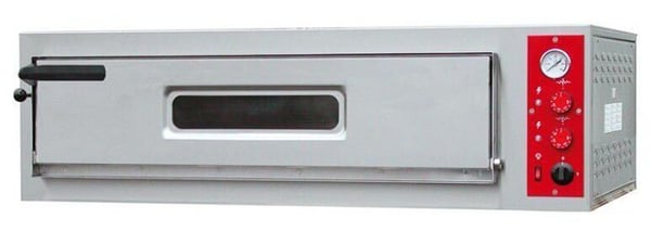 Печь для пиццы однокамерная c электромеханическим управлением имеет переднюю панель из нержавеющей стали, корпус - из крашенной стали. Внутренний размер камеры - 660х990х150мм. Вместимость печи - 6 пицц диаметром 300мм. Мощность верхних Тэнов - 3х1270Вт, нижних - 3х1000Вт. Камера имеет регулировку температуры до +450С. Дно камеры выложено огнеупорным камнем. Печь оснащена внутренней подсветкой, жаропрочным смотровым окном в дверце, термометром.