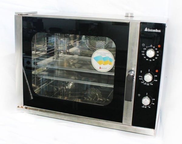 Конвекционная печь служит для приготовления продуктов, при помощи равномерной циркуляции горячего воздуха по всей поверхности печи. Циркуляция происходит за счет работы вентилятора. Печь выполнена из нержавеющей стали, дверца стеклянная. Конструкция печи имеет скругленные углы и съемные направляющие для лучшей очистки, что очень важно для соблюдения гигиены и чистоты. Управление печью осуществляется при помощи механической панели. Дополнительные функции: подсветка, подача пара, регулировка оборотов вентилятора, регулировка температуры, таймер. 6 уровней под гастроемкости GN1/1 или противни 600х400 мм.