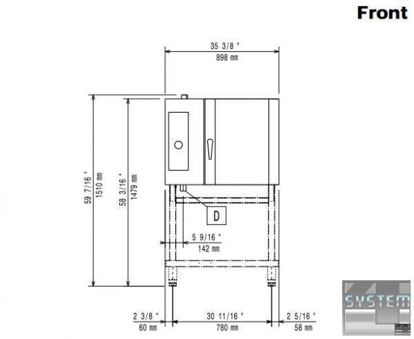 Аппарат с электромеханической панелью управления позволит вам с высокой точностью регулировать параметры приготовления пищи. На ней расположен поворотный тумблер, кнопки и два индикационных жидкокристаллических дисплея. Конвекционная печь настольного исполнение на 4 ножках. В комплектацию входит термощуп, позволяющий с узнать температуру внутри блюда.