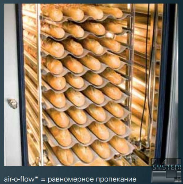 Печь с пароувлажнением, интенсивность можно изменять на 11 уровней. Мощные нагревательные элементы и вентиляция равномерно распределяет горячий воздух по всей рабочей камеры печи, благодаря чему, продолжительность тепловой обработки продуктов уменьшается, что экономит электроэнергию. Вентиляция может работать в режиме PULSE - для выпечки и приготовления при низкой температуре.