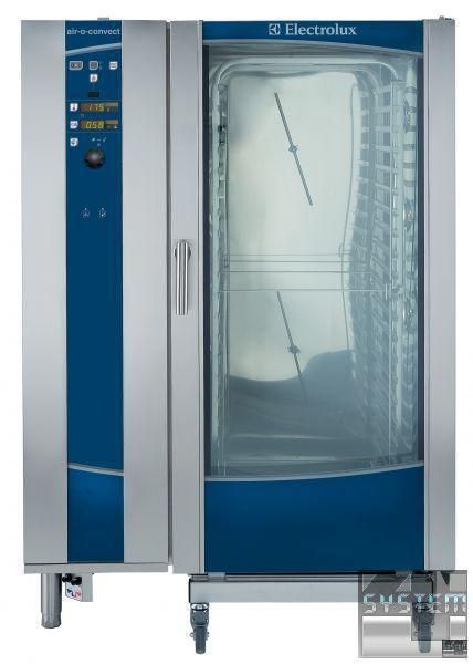 Конвекционная печь Electrolux AO21021ECA2 (артикул 269205) инжекторного типа на 20 GN2/1 гастроемкостей, инжекторного типа, режим приготовления задается вручную (выставляется температура, время приготовления и уровень влажности в камере), автоматическая система мойки Air-o-Clean, вентилятор двойного действия, равномерное распределение горячего воздуха Air-o-Flow, 11 ступеней паронасыщения, электронное управление, быстрое охлаждение камеры, ручной впрыск воды, функция мармита (так же позволяет готовить при низких температурах), однозонный пробник-зонд, двойной стеклопакет двери, термостат, подсветка камеры, в комплекте с тележкой, нерж. сталь. Печь имеет прямоугольную форму с габаритными размерами: 1243мм (длина), 1107мм (глубина), 1795мм (высота) и весит 358кг. Аппарат питается от трехфазной сети мощностью 50кВт с напряжением 400В и частотой 50 Гц.