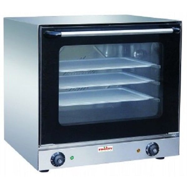 Мощный вентилятор гарантирует быстрое и равномерное распределение тепла по всему объему аппарата. Корпус и внутренняя часть печи выполнены из высококачественной нержавеющей стали. Рабочая температура печи от +0 и +300ºС. Модель вмещает решетки 2шт. - 452х330 мм и противни 2 шт. - 452х330 мм. Благодаря циркуляции горячего воздуха внутри печи, гарантируется равномерное приготовление продукта со всех сторон. Печь оснащена одним вентилятором. Мощность 3,20кВт. Производительность продукции составляет 10 кг в час.