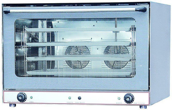 Мощный вентилятор гарантирует быстрое и равномерное распределение тепла по всему объему аппарата. Корпус и внутренняя часть печи выполнены из высококачественной нержавеющей стали. Рабочая температура печи от +0 и +300ºС. Модель вмещает решетки 2шт. - 600х400 мм и противни 2 шт. - 600х400 мм. Обладает функцией пароувлажнения. Благодаря циркуляции горячего воздуха внутри печи, гарантируется равномерное приготовление продукта со всех сторон. Два реверсных вентилятора и двойная термоизоляция. Мощность 3,20кВт. Производительность продукции составляет 20 кг в час.
