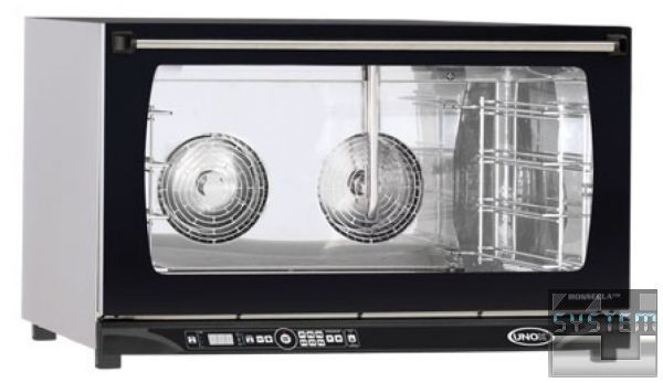 Потоки горячего воздуха благодаря особым высокоскоростным и более мощным вентиляторам равномерно распределяются в пекарной камере, обеспечивая равномерное пропекание продукта на всех противнях, содержащихся в печи, и в каждой точке одного противня.