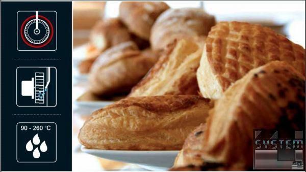 - Запатентованная система «DRY.Maxi» служит для вытяжки влажного воздуха (вывода влажности из продукта), сохранения и улучшения внутренней структуры продукта (напр., позволяет получить однородный, равномерный мякиш у мелкоштучных х/б изделий), а также способствует образованию у изделий хрустящей внешней поверхности.
