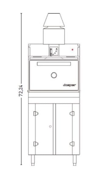 Печь-гриль на закрытом столе с дверцами, с верхней открытой полкой, с подставкой для противней, позволяет одновременно использовать преимущества печи и мангала. В качестве топлива используется чистый древесный уголь. Приготовление пищи осуществляется в закрытой печи на решетках. Допускается одновременное использование не более 2-х решеток. Печь HJX-25/L*BC подойдет для обслуживания ресторана с 40 посадочными местами. Изготовлена методом высокоточного чугунного литья (толщина стенки 5 см). Конструкция печи-гриля гарантирует ее эксплуатацию в течение 15-20 лет без специального обслуживания. Для регулировки интенсивности горения служат шибер, стандартно установленный на дымоходе печи и регулируемый колосник, расположенный под решеткой, на которой происходит сгорание угля. При установке в закрытых помещениях, конструкция печи гарантирует ее безопасную эксплуатацию. Литые направляющие под решетку позволяют регулировать положение продукта относительно углей. Благодаря высоким температурам, время приготовления блюд в печи JOSPER очень мало: - куриные ноги 3 мин. (7 кг, 2 решетки); – большие куски говядины 6 мин. (7 кг 2 решетки); – картофель целиком 10 мин. Служит для приготовления всех видов грилей и барбекю.