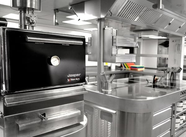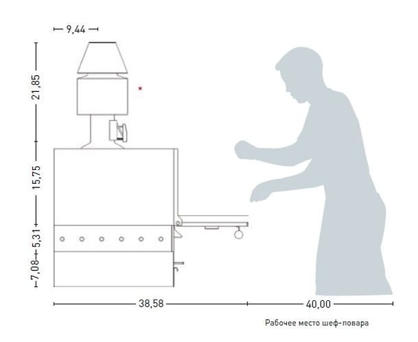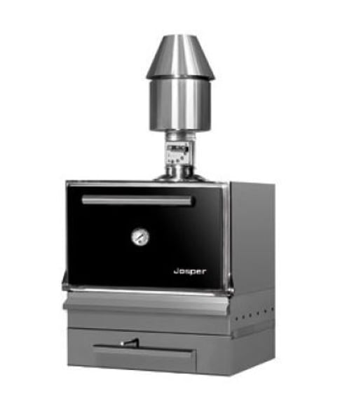 Печь-гриль настольная, позволяет одновременно использовать преимущества печи и мангала. В качестве топлива используется чистый древесный уголь. Приготовление пищи осуществляется в закрытой печи на решетках. Допускается одновременное использование не более 2-х решеток. Печь HJX-25/M подойдет для обслуживания ресторана с 40 посадочными местами. Изготовлена методом высокоточного чугунного литья (толщина стенки 5 см). Конструкция печи-гриля гарантирует ее эксплуатацию в течение 15-20 лет без специального обслуживания. Для регулировки интенсивности горения служат шибер, стандартно установленный на дымоходе печи и регулируемый колосник, расположенный под решеткой, на которой происходит сгорание угля. При установке в закрытых помещениях, конструкция печи гарантирует ее безопасную эксплуатацию. Литые направляющие под решетку позволяют регулировать положение продукта относительно углей. Благодаря высоким температурам, время приготовления блюд в печи JOSPER очень мало: - куриные ноги 3 мин. (7 кг, 2 решетки); – большие куски говядины 6 мин. (7 кг 2 решетки); – картофель целиком 10 мин. Служит для приготовления всех видов грилей и барбекю.