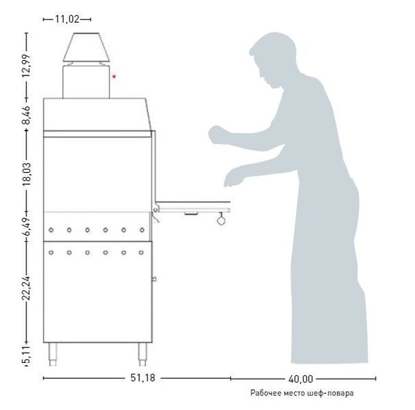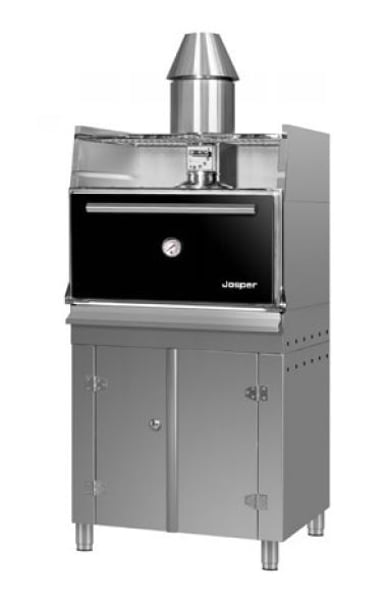 Печь-гриль на закрытом столе с дверцами, с верхней открытой полкой, с подставкой для противней, позволяет одновременно использовать преимущества печи и мангала. В качестве топлива используется чистый древесный уголь. Приготовление пищи осуществляется в закрытой печи на решетках. Допускается одновременное использование не более 2-х решеток. Печь HJX-45/L*BC подойдет для обслуживания ресторана с 70 посадочными местами. Изготовлена методом высокоточного чугунного литья (толщина стенки 5 см). Конструкция печи-гриля гарантирует ее эксплуатацию в течение 15-20 лет без специального обслуживания. Для регулировки интенсивности горения служат шибер, стандартно установленный на дымоходе печи и регулируемый колосник, расположенный под решеткой, на которой происходит сгорание угля. При установке в закрытых помещениях, конструкция печи гарантирует ее безопасную эксплуатацию. Литые направляющие под решетку позволяют регулировать положение продукта относительно углей. Благодаря высоким температурам, время приготовления блюд в печи JOSPER очень мало: - куриные ноги 3 мин. (7 кг, 2 решетки); – большие куски говядины 6 мин. (7 кг 2 решетки); – картофель целиком 10 мин. Служит для приготовления всех видов грилей и барбекю.
