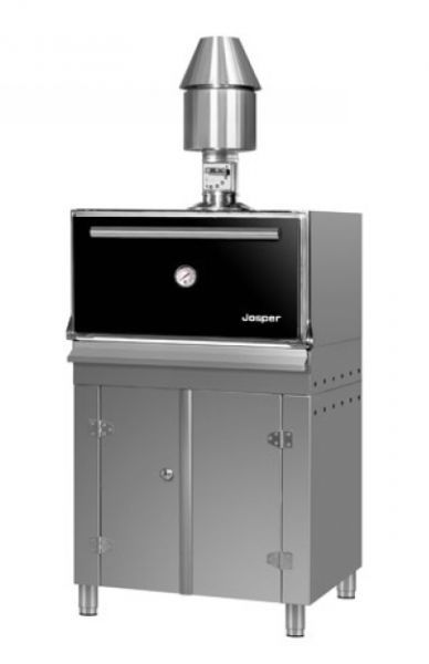 Печь-гриль на закрытом столе с дверцами, позволяет одновременно использовать преимущества печи и мангала. В качестве топлива используется чистый древесный уголь. Приготовление пищи осуществляется в закрытой печи на решетках. Допускается одновременное использование не более 2-х решеток. Печь HJX-45L подойдет для обслуживания ресторана с 70 посадочными местами. Изготовлена методом высокоточного чугунного литья (толщина стенки 5 см). Конструкция печи-гриля гарантирует ее эксплуатацию в течение 15-20 лет без специального обслуживания. Для регулировки интенсивности горения служат шибер, стандартно установленный на дымоходе печи и регулируемый колосник, расположенный под решеткой, на которой происходит сгорание угля. При установке в закрытых помещениях, конструкция печи гарантирует ее безопасную эксплуатацию. Литые направляющие под решетку позволяют регулировать положение продукта относительно углей. Благодаря высоким температурам, время приготовления блюд в печи JOSPER очень мало: - куриные ноги 3 мин. (7 кг, 2 решетки); – большие куски говядины 6 мин. (7 кг 2 решетки); – картофель целиком 10 мин. Служит для приготовления всех видов грилей и барбекю.