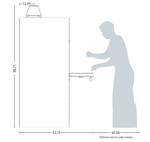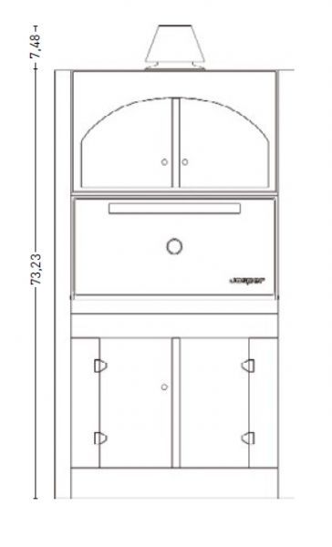 Печь-гриль на закрытом столе с дверцами, со шкафом над печкой, позволяет одновременно использовать преимущества печи и мангала. В качестве топлива используется чистый древесный уголь. Приготовление пищи осуществляется в закрытой печи на решетках. Допускается одновременное использование не более 2-х решеток. Печь HJX-50/L*ACX-P подойдет для обслуживания ресторана с 100 посадочными местами. Изготовлена методом высокоточного чугунного литья (толщина стенки 5 см). Конструкция печи-гриля гарантирует ее эксплуатацию в течение 15-20 лет без специального обслуживания. Для регулировки интенсивности горения служат шибер, стандартно установленный на дымоходе печи и регулируемый колосник, расположенный под решеткой, на которой происходит сгорание угля. При установке в закрытых помещениях, конструкция печи гарантирует ее безопасную эксплуатацию. Литые направляющие под решетку позволяют регулировать положение продукта относительно углей. Благодаря высоким температурам, время приготовления блюд в печи JOSPER очень мало: - куриные ноги 3 мин. (7 кг, 2 решетки); – большие куски говядины 6 мин. (7 кг 2 решетки); – картофель целиком 10 мин. Служит для приготовления всех видов грилей и барбекю.