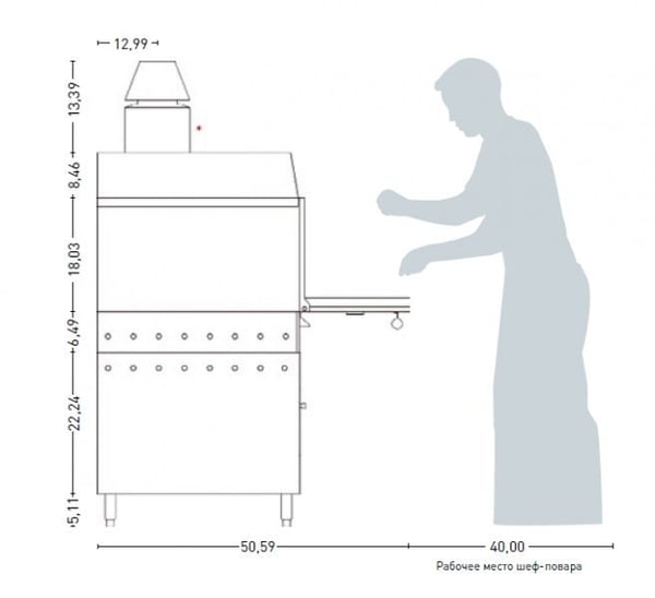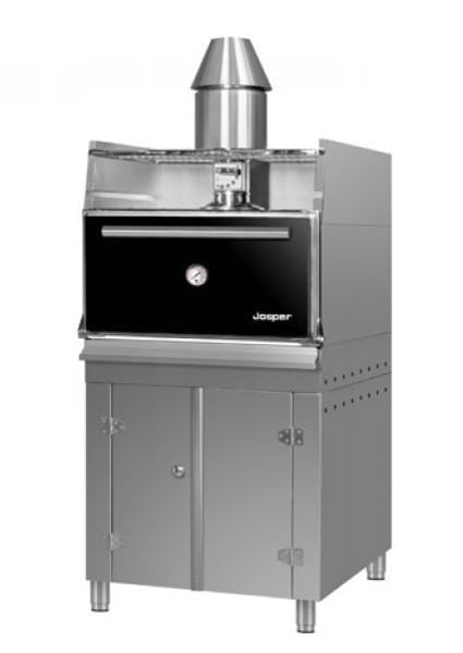 Печь-гриль на закрытом столе с дверцами, с верхней открытой полкой, с подставкой для противней, позволяет одновременно использовать преимущества печи и мангала. В качестве топлива используется чистый древесный уголь. Приготовление пищи осуществляется в закрытой печи на решетках. Допускается одновременное использование не более 2-х решеток. Печь HJX-50/L*BC подойдет для обслуживания ресторана с 100 посадочными местами. Изготовлена методом высокоточного чугунного литья (толщина стенки 5 см). Конструкция печи-гриля гарантирует ее эксплуатацию в течение 15-20 лет без специального обслуживания. Для регулировки интенсивности горения служат шибер, стандартно установленный на дымоходе печи и регулируемый колосник, расположенный под решеткой, на которой происходит сгорание угля. При установке в закрытых помещениях, конструкция печи гарантирует ее безопасную эксплуатацию. Литые направляющие под решетку позволяют регулировать положение продукта относительно углей. Благодаря высоким температурам, время приготовления блюд в печи JOSPER очень мало: - куриные ноги 3 мин. (7 кг, 2 решетки); – большие куски говядины 6 мин. (7 кг 2 решетки); – картофель целиком 10 мин. Служит для приготовления всех видов грилей и барбекю.
