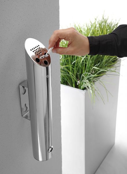Пепельница для заведения выполнена из нержавеющей стали 18/8, имеет прочную конструкцию и легко монтируется на стену или столб.