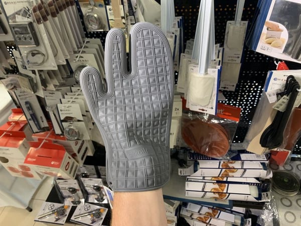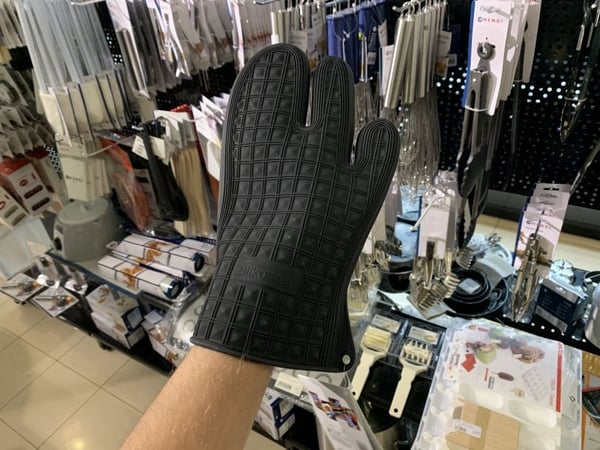 Перчатки-прихватки выдерживают температуру до 200 градусов. Ими смело можно доставать решетки из пароконвектоматов, жарочных шкафов, конвектоматов, также переворачивать выпечку на противне. Узоры на перчатке предотвращают скольжение горячих предметов. Материал прочный, гипоаллергенный.