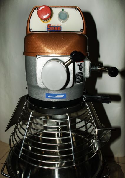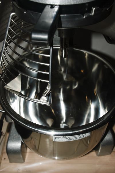 Данный миксер служит для замесов плотного теста, фарша и взбивания различных кремов, пюре и продуктов. Изготовлен из нержавеющей стали. Дежа съемная, на 20 литров, удобно мыть. Дежа поднимается вручную, имеется защитная сетка. Миксер имеет защиту от перегрузок, а управление в нем электромеханическое. Процесс загрузки продукта происходит без остановки. В комплекте мешалка, крюк и венчик.