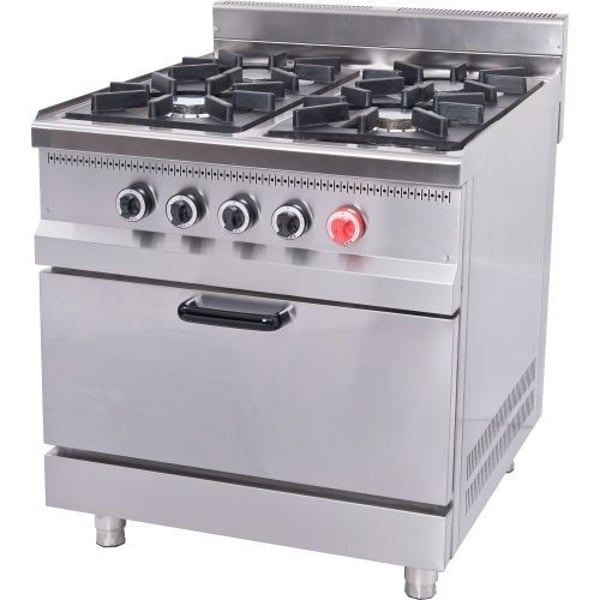 Плита 4х конфорочная настольная с духовым шкафом и газовым контроллером. Корпус плиты и основные рабочие элементы изготовлены из пищевой нержавеющей стали и чугуна.
