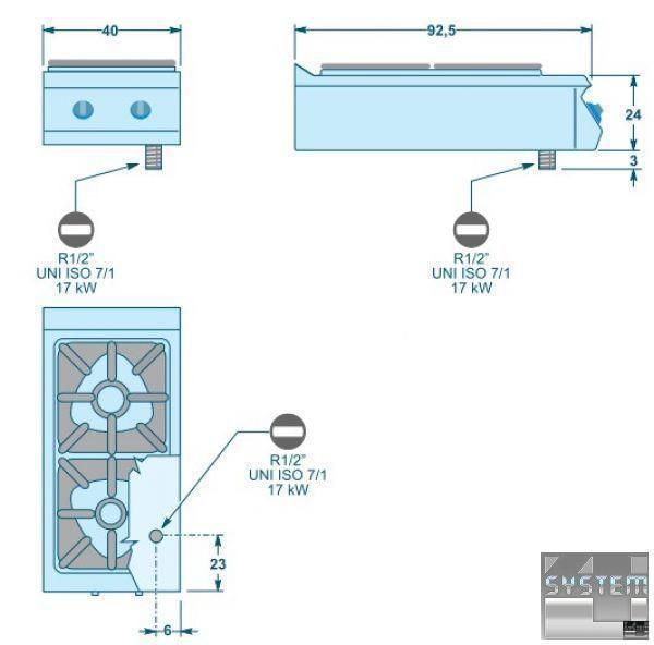 Плита газовая, открытая, напольная с 2 нагревательными элементами мощностью 7 кВт и 10 кВт (диамектр 110 мм и 130 мм соответсвено), форма конфорок – квадратные, без духового шкафа - функциональный элемент линии Alpha 900. Пламя "двойная корона", пилотное пламя. Горелки водонепроницаемы и прессформированы. Термостатический клапан с пилотом, термопарой и пьезоэлектрическим воспламенением. Контролер температуры приготовления от 160 до 280 градусов Цельсия. Перед покупкой необходимо уточнить тип газа для конкретного экземпляра плиты. Материал корпуса – нержавеющая сталь AISI 304 толщиной 2 мм, благодаря чему обеспечивается долговечность эксплуатации.